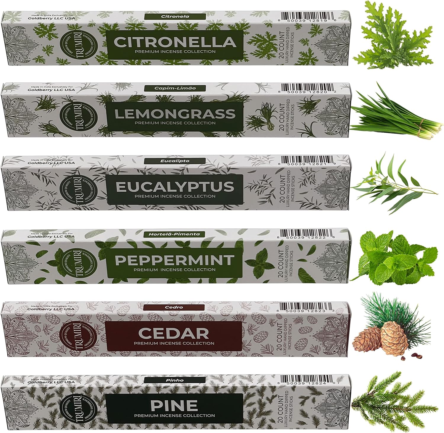 Introduce a sense of tranquility and relaxation into your space with our Leafy Incense Sticks Variety Pack. Each pack includes 6 invigorating scents, including citronella, lemongrass, eucalyptus, pine, cedar, and peppermint. With 20 sticks per scent and a total of 120 sticks, our pack comes with an incense holder for easy use. Elevate your senses and create a soothing atmosphere with our leafy incense sticks!